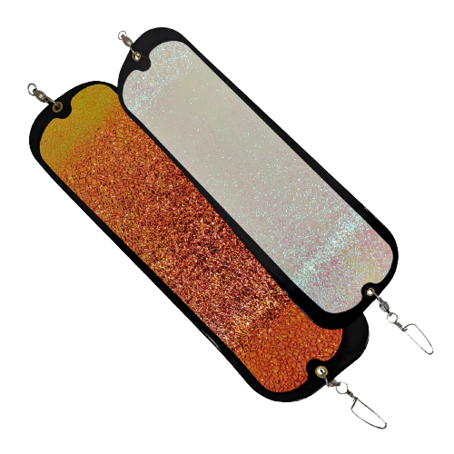 We're thrilled to announce the triumphant return of the Black Onion – a true crowd-pleaser! Now proudly offered under our renowned O'ki Tackle brand, this exceptional flasher is here to elevate your fishing experience to new heights. With a sleek Black blade, mesmerizing UV Crinkle Tape (Moonjelly) on the front, and premium glow crush tape on the back, this is a must-have addition that's creating a buzz in the fishing community.