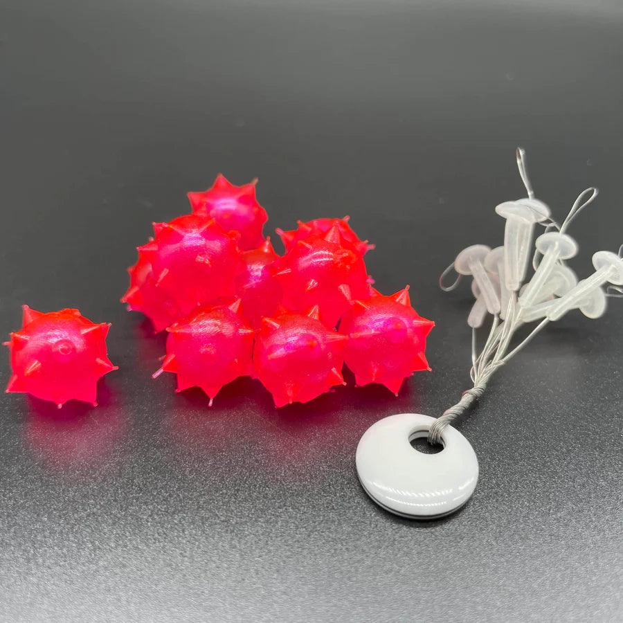 Similar to other BnR Soft Beads the BURRBEAD is manufactured with a through hole for easy loading on and off the line. This shape has two key advantages, first the spikes provide a unique bounce off of the river structure while being fished and second the overall profile of the bait provides a differentiating shape when compared to other beads. Plus once the fish try them they will be stuck on them for good!